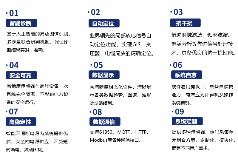 - 7x24小时连续感知和研判高压电力设备潜在的缺陷隐患,输出预警信息。